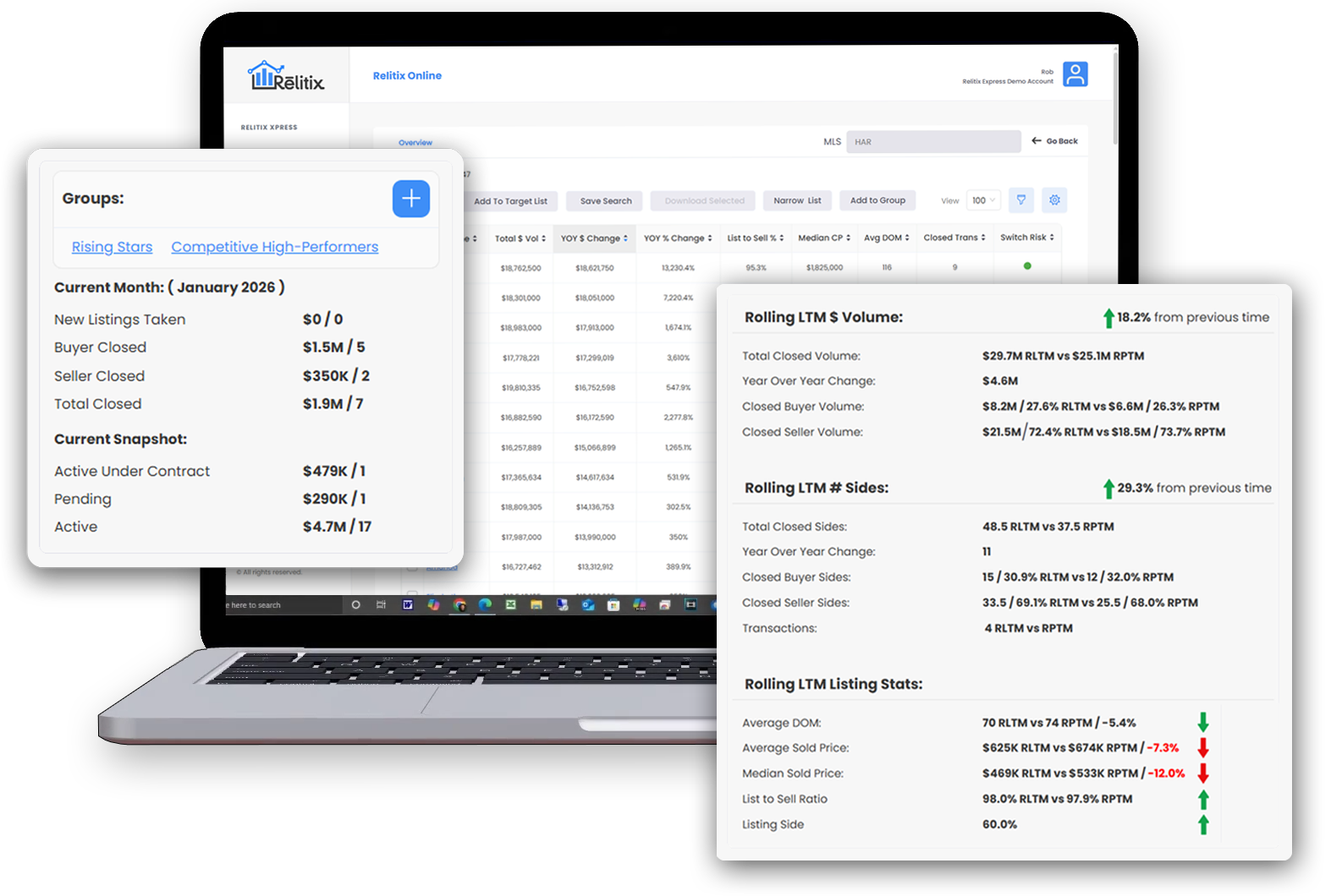 Relitix makes real estate agent performance metrics easy from day one. Track every agent’s production in real-time. See who you’re up against in a deal. Deliver targeted coaching. Spot top recruiting prospects with strong growth potential before your competitors. And uncover agents ready to switch firms. Relitix instantly integrates with your MLS and complements your CRM to power every part of your brokerage’s success.